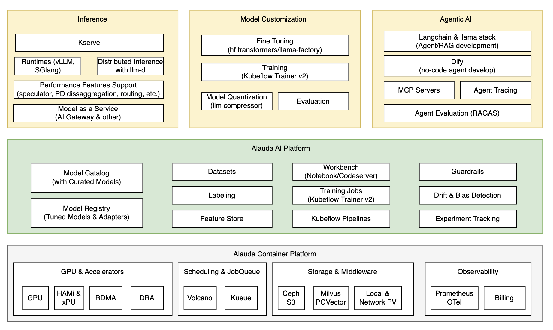 | Kueue (Alauda Build of Kueue) | AI 工作负载的作业调度 | 开源 | Apache 2.0 许可证 |