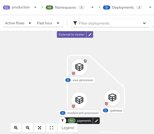 - 打开图例,了解用于命名空间、部署和连接的符号。