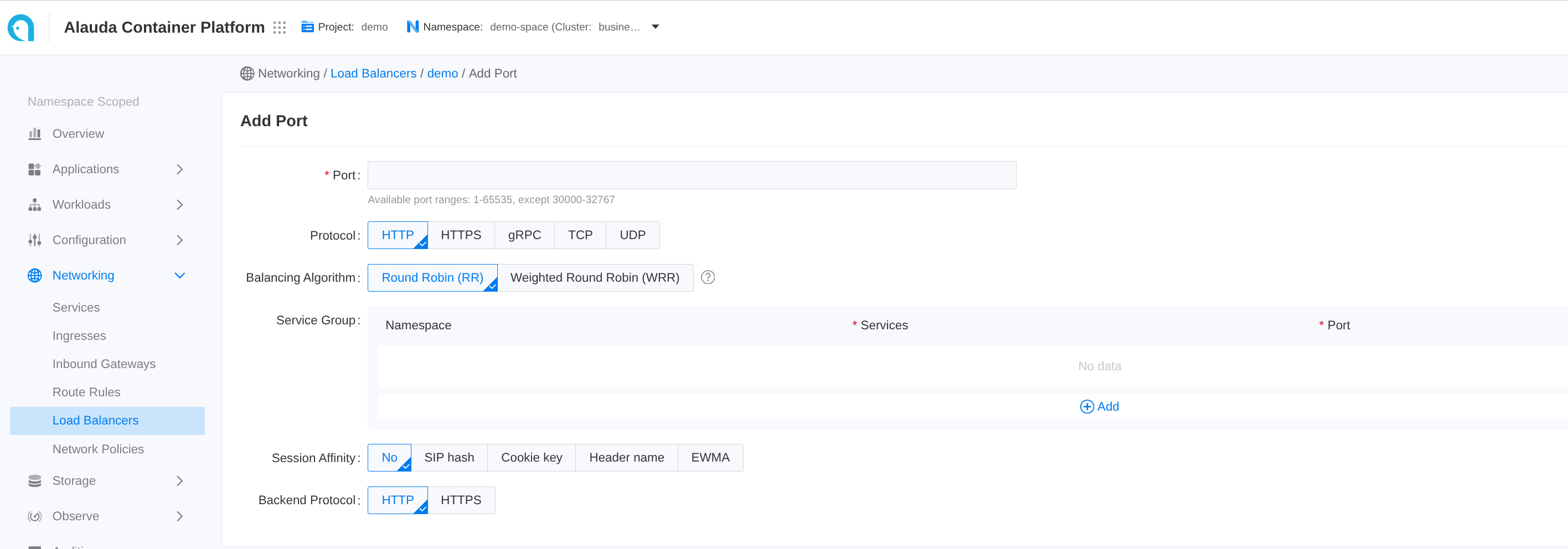 - In the web UI, only users in the given project can find and configure this ALB.