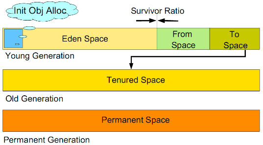 Young Generation: Includes the Eden area, SurvivorFrom area, and SurvivorTo area, used for storing newly created objects. Most new objects are allocated in the Eden area (if an object is too large, it is directly allocated to the Old Generation), and the process of garbage collection in the Young Generation is called Minor GC. When the memory in the Eden area is insufficient, Minor GC is triggered.