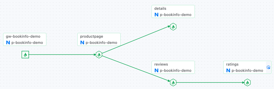 • Repeat the above steps to add the services productpage, details, reviews, and ratings to the platform in the namespace ns1 of clusters c1 and c2.