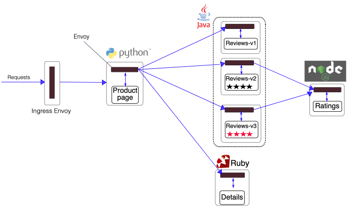 The end-to-end architecture of Bookinfo is shown below.